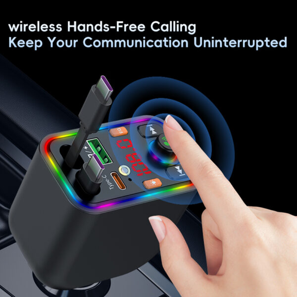 4-in-1 Pd30W Fast Charging Car Charger BT5.3 Type-c Chargers For MP3 Player Answer Calls Retractable Car Charger With Starlight