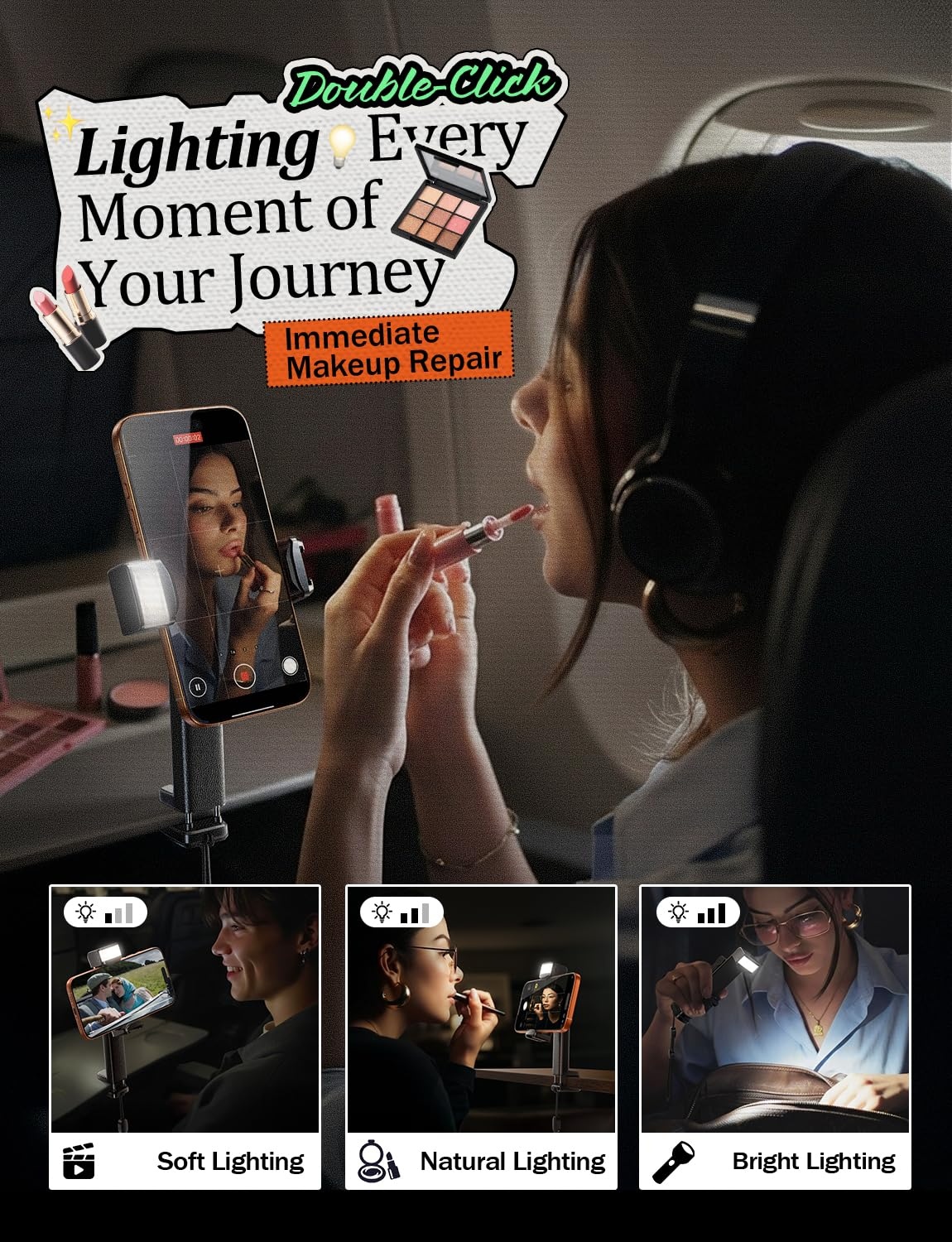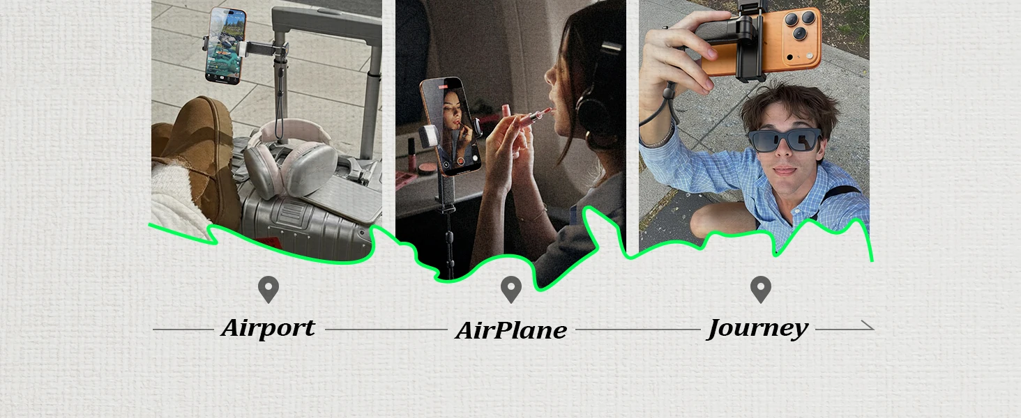 LISEN Handsfree Airplane Phone Holder with Light 360 Rotation Phone Mount for Plane Seat Back Travel Flying Accessories