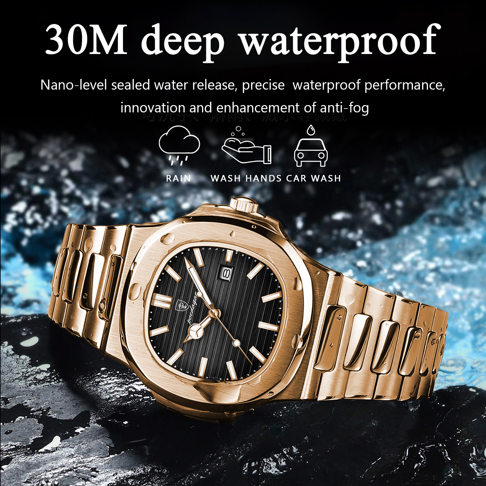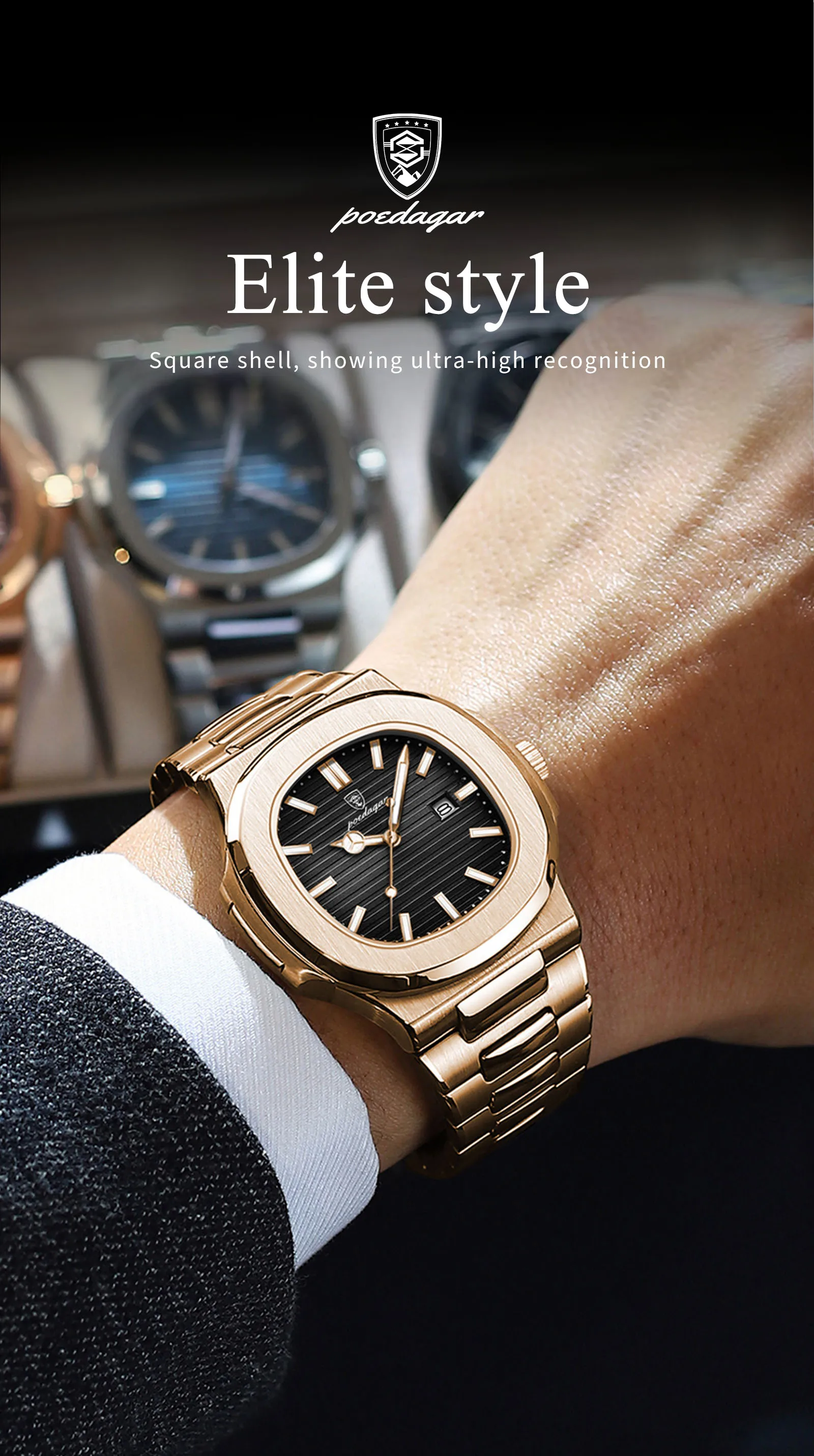 Poedagar Luxury Stainless Steel Mens Watch Waterproof Luminous Quartz Watches for Men quantity