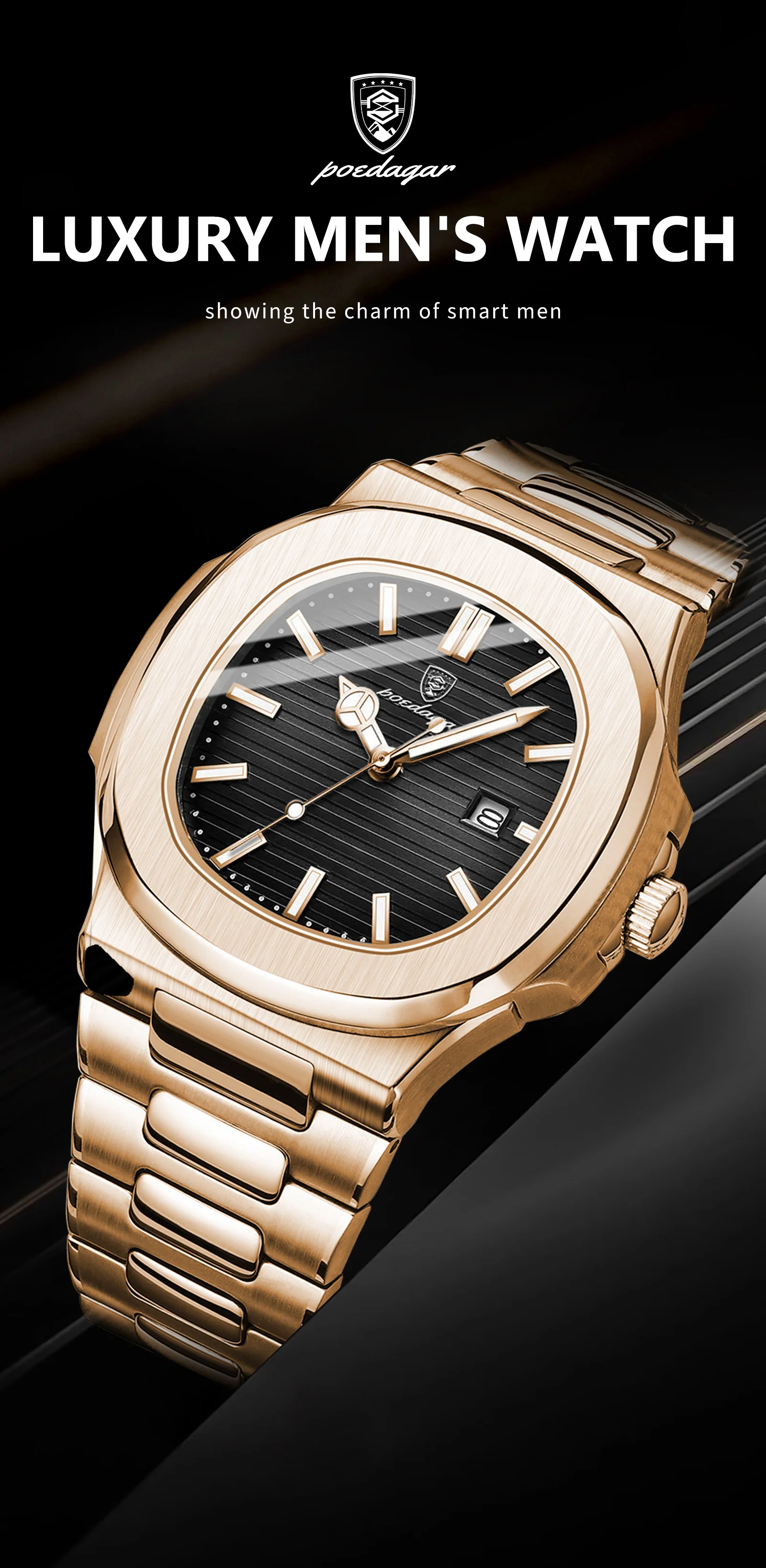 Poedagar Luxury Stainless Steel Mens Watch Waterproof Luminous Quartz Watches for Men