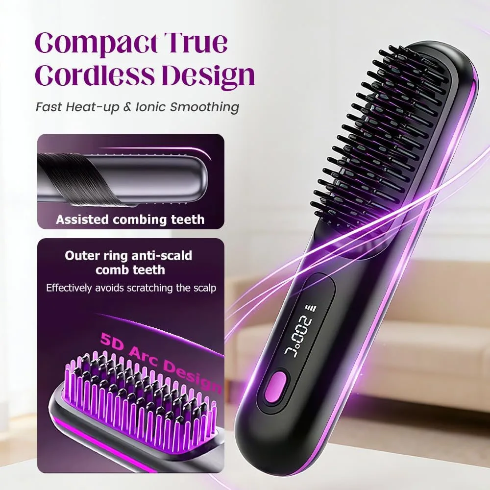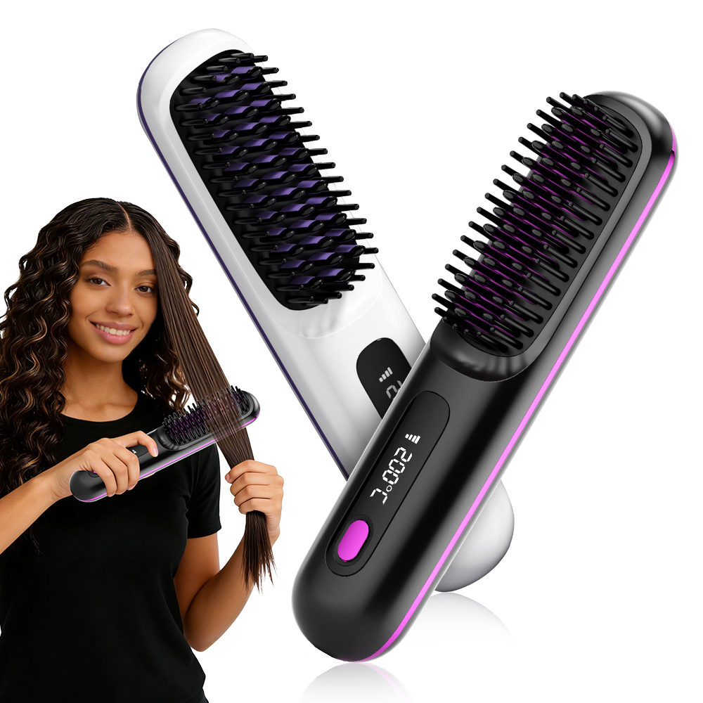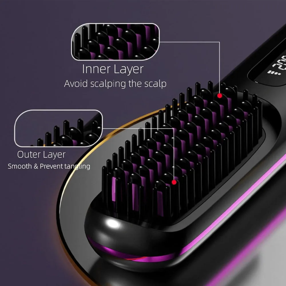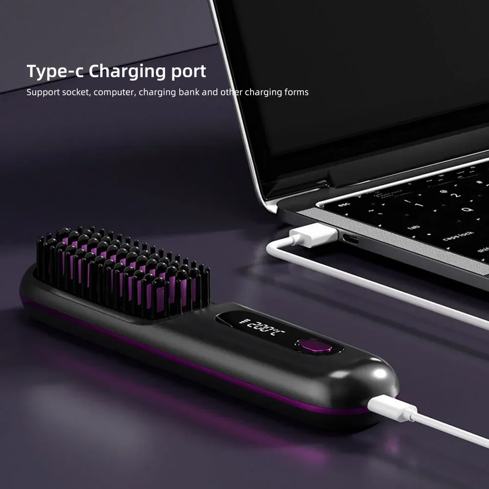 Rechargeable Heating Hair Straight Comb Electric Cordless Hair Style Brush Portable Mini Hair Straightener Brush