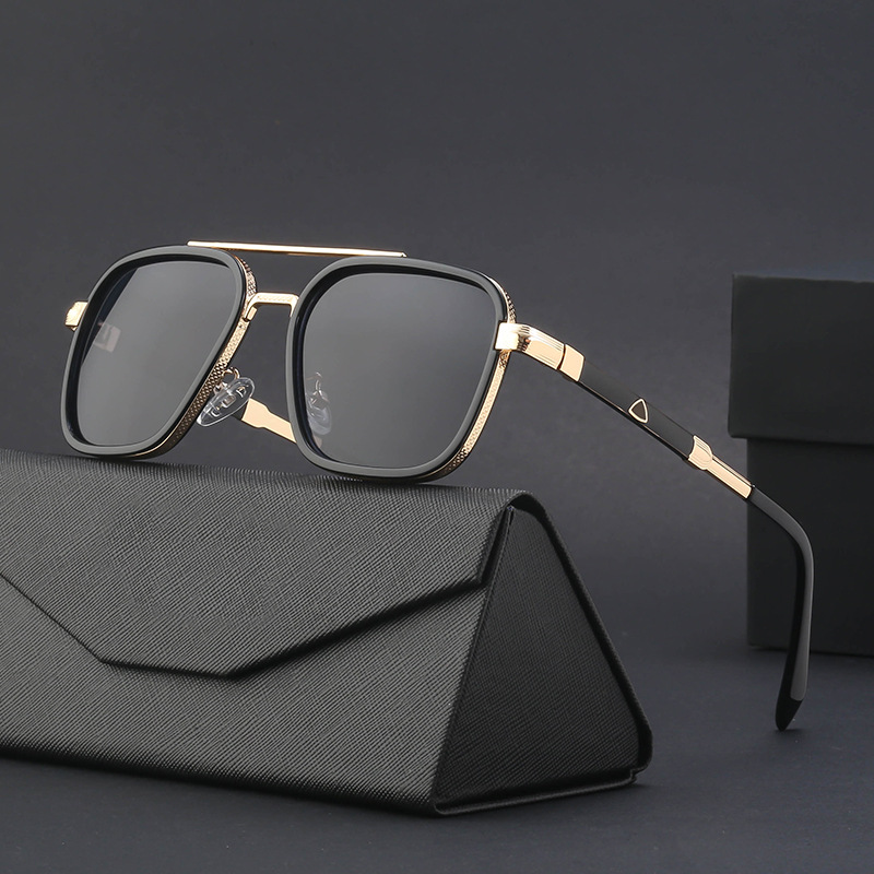 Trendy Designer Shades Sun Glasses Metal Square Frame Double Bridge UV400 Protection Sunglasses for Men